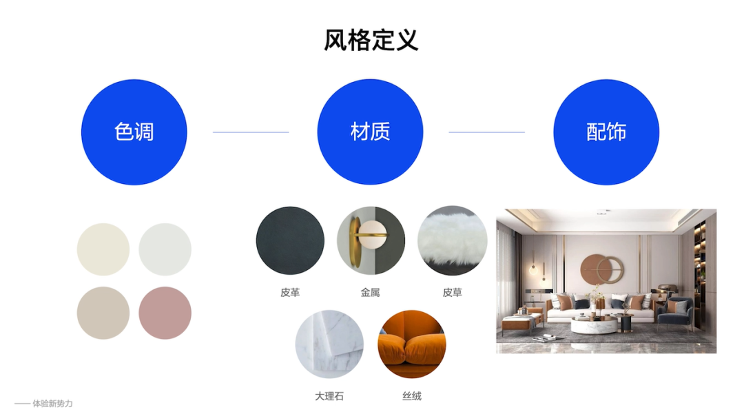 站在体验设计师的角度,以提升用户体验为目标,通过家装设计、软装设计对虚拟空间的风格进行定义,依据基调确定材质、色调、配饰等,进行全面细致的定制化设计,使其符合用户对不同种类研制效果的认知。