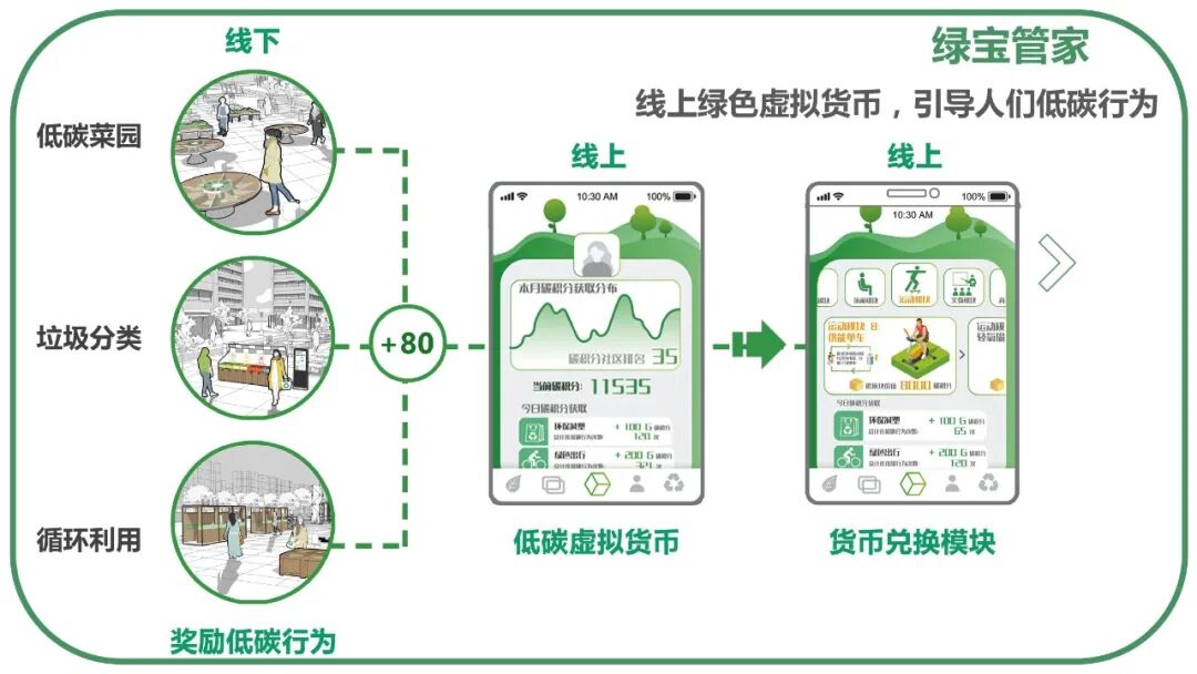 “绿宝管家”APP使用虚拟货币“绿宝币”,引导人们采取低碳行为。奖励的低碳积分可兑换休闲、运动等不同的功能模块,实现对场地的“定制”;