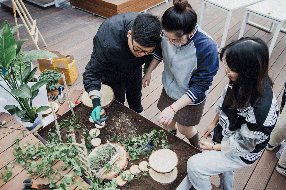 我们通过一场游戏的互动在山茶树的见证下获得“水仙”给予的种子,在“灵鱼”的守护下开启一场秘密的生长之旅。我们想见证自己从未停止对这个世界探索的脚步。六个“品格”种球培植筒里分别对应放置了六种品格的郁金香种子,来年春天将开着明艳的“品格之花”迎接大家的归来。