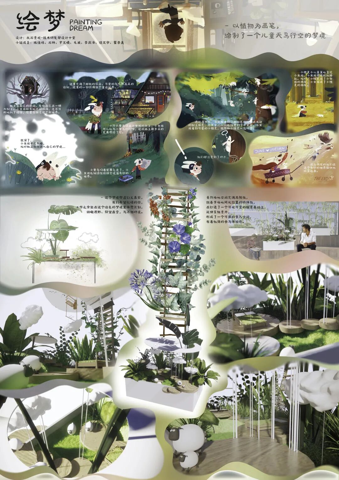以植物为画笔,我们绘制了一个儿童天马行空的梦境。即使场地空间有限,我们相信,有想象力的地方便是无疆,虽然场地空间充满局限性,但基于场地所处位置的特殊性,在打造了一个可观可赏的框景基础上,延伸至框景外,形成了一个可用的亲人空间,有着极强的参与体验感。