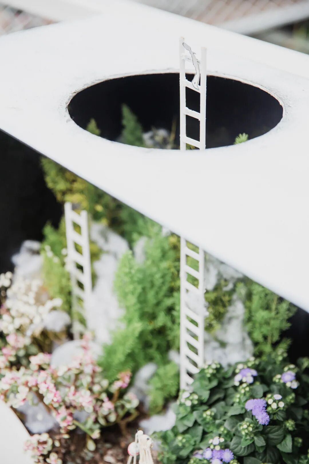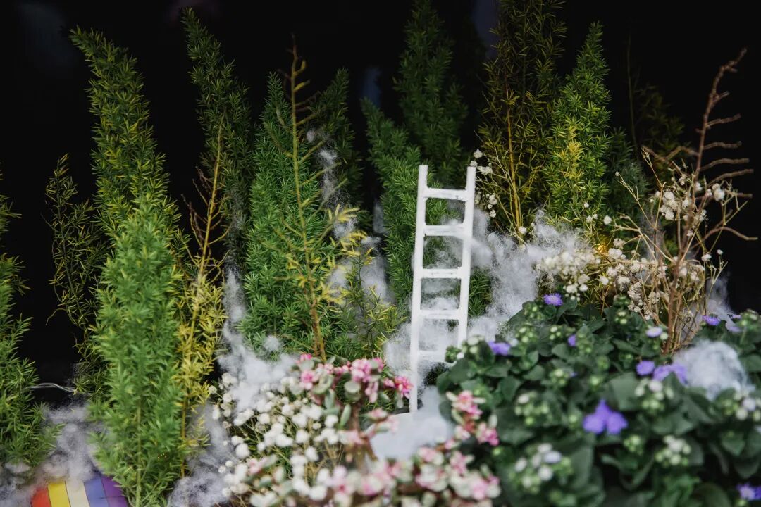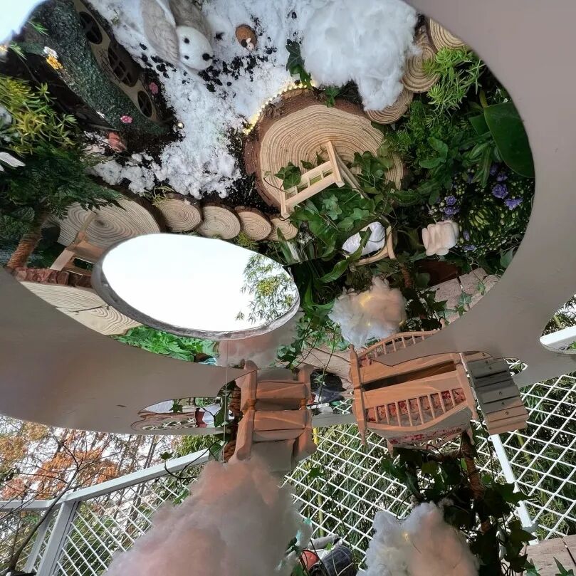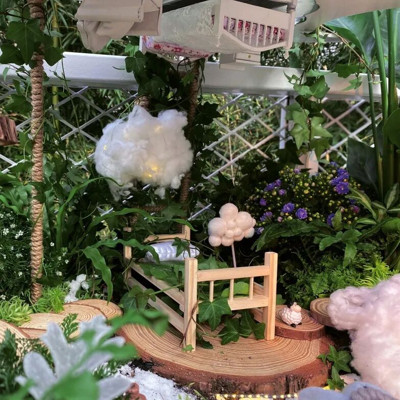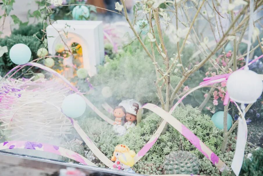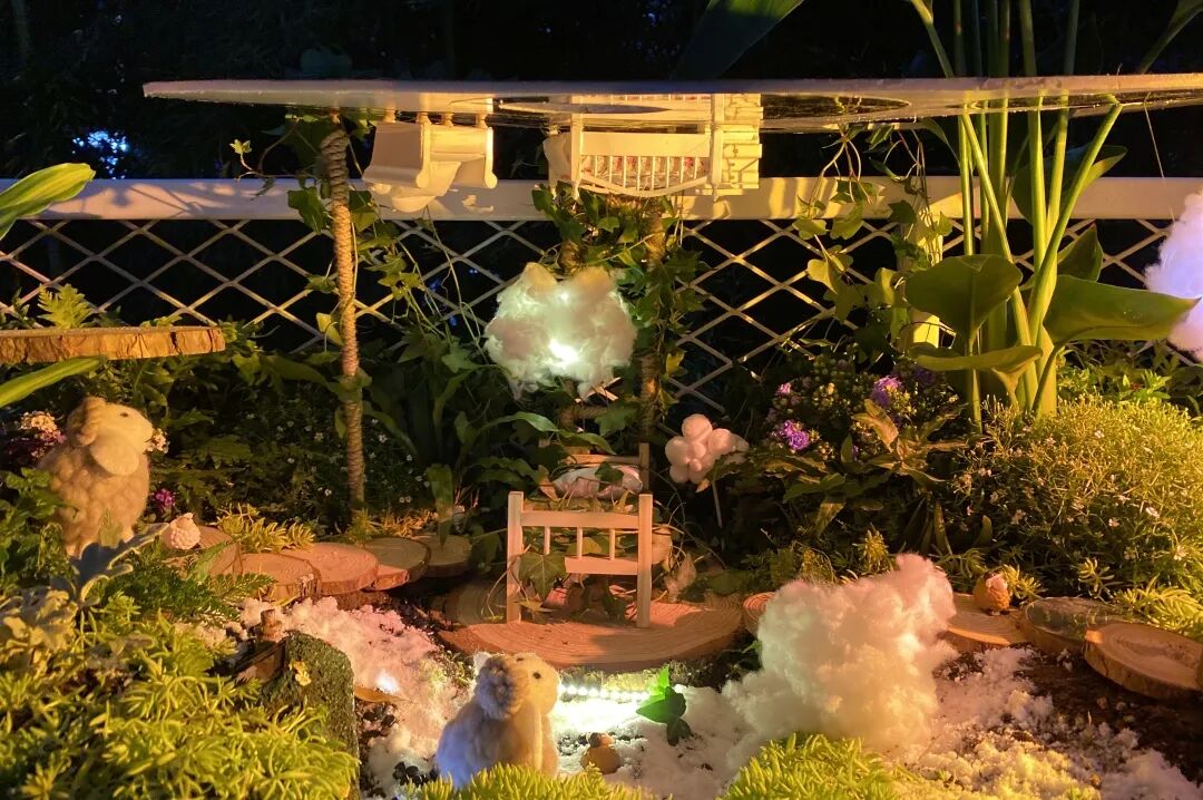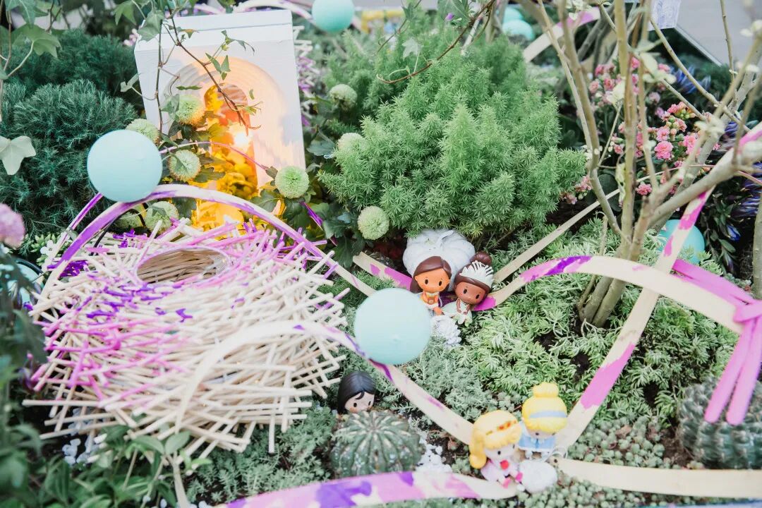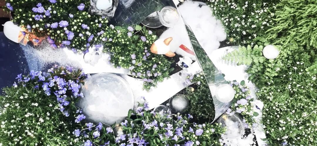 我们希望通过植物配置和特色IP打造一个充满童话的世界,光线穿透珊瑚屏风洒下绚丽的色彩,阳光下,小美人鱼从细叶满天星、丹麦风铃等花卉丛中游过,泡泡一个接一个地从她身边飞出,大的像气球,小的像珍珠。小美人鱼收到鸟儿的邀请,顺着云梯的指引,即将开启一段新的旅程。