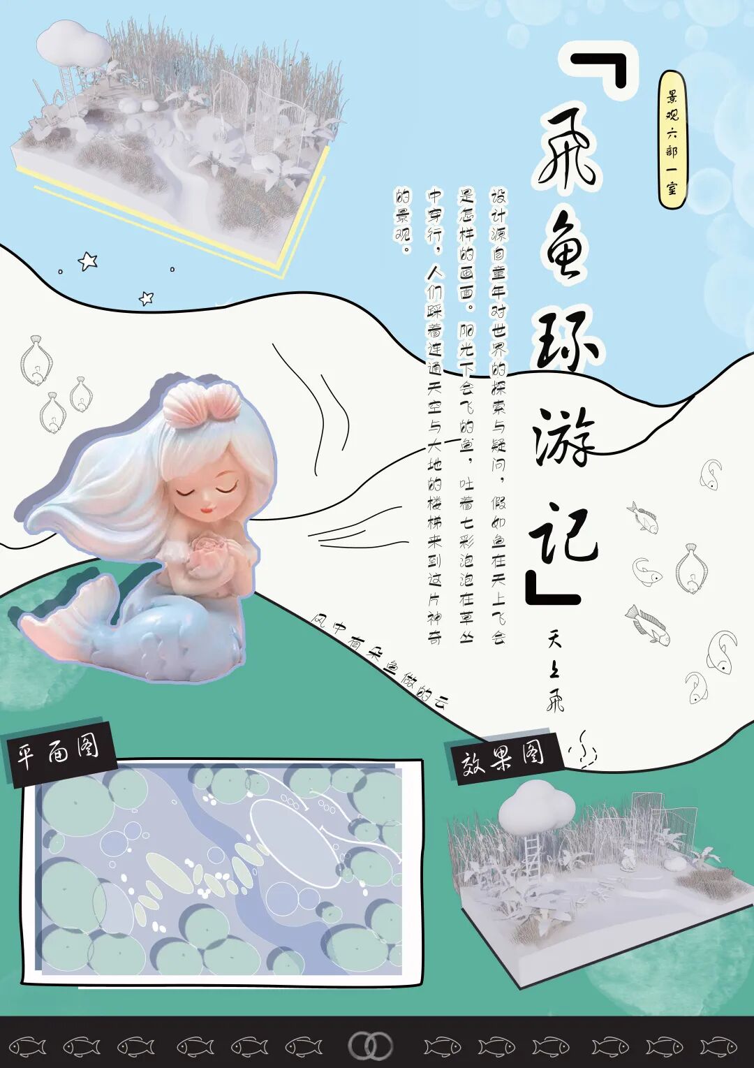 通过这个充满童趣的作品,鼓励大家如小美人鱼一样,在绝对自由的境界中摆脱束缚,从局限达到无限体会真正的逍遥游。