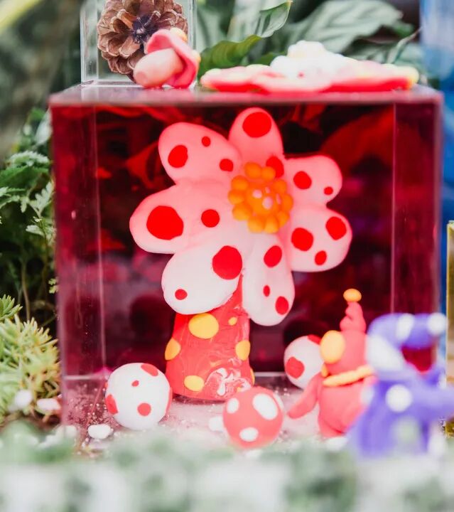 这光怪陆离的场景氛围是我们内心对于童趣的大态度,用自由的、原始的、情绪化的传达形式呈现,是自由生长的植物,是最原始的色彩,是经过融合与反差,形成超现实的情绪容器。