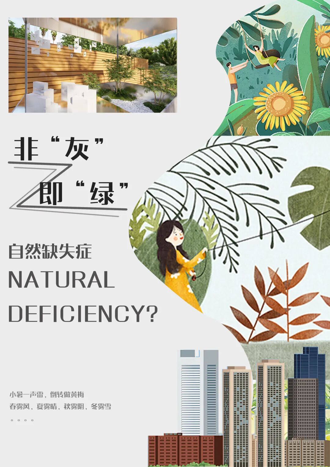 这个作品表达了“灰色”的城市与“绿色”的自然之间的碰撞,一边是需要“治愈”的城市,一边是绿意盎然的山地景观,美好的自然中有怡人的风景,更承载着我们传统的节气文化。我们需要走进自然,但是我们更希望越来越多的人去关注与自然有关的文化内涵。