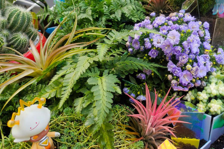 使用植物:空气凤梨 满天星 多头仙人球 狼尾蕨 银脉凤尾蕨 狐尾天门冬 薄雪万年青 丹麦风铃 多肉
