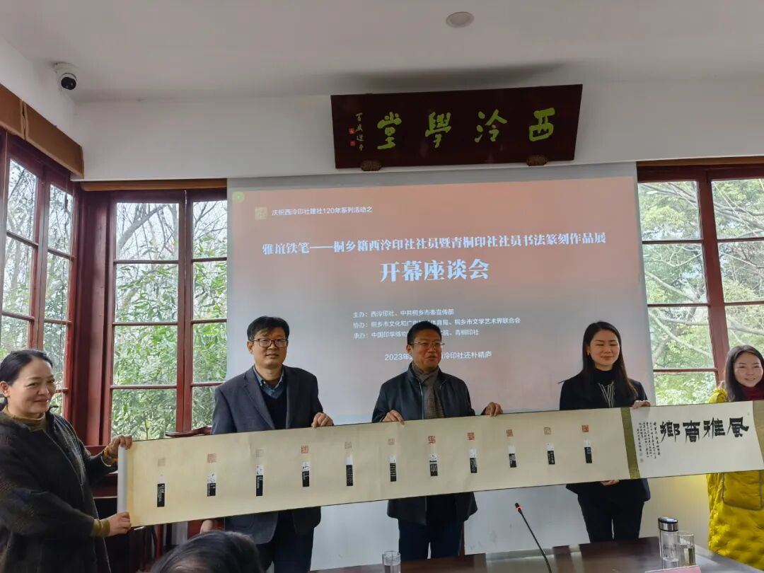 “寻芳犹剩西泠好,踏遍长堤未肯归。”桐乡籍已故西泠印社副社长钱君匋在《湖上醉书》中这样写道。2月4日是农历癸卯正月十四,也是二十四节气中的第一个节气——“立春”。由西泠印社和中共桐乡市委宣传部主办的“庆祝西泠印社建社120年系列活动之雅谊铁笔——桐乡籍西泠印社社员暨青桐印社社员书法篆刻作品展”的在杭州西泠印社孤山社址开幕。