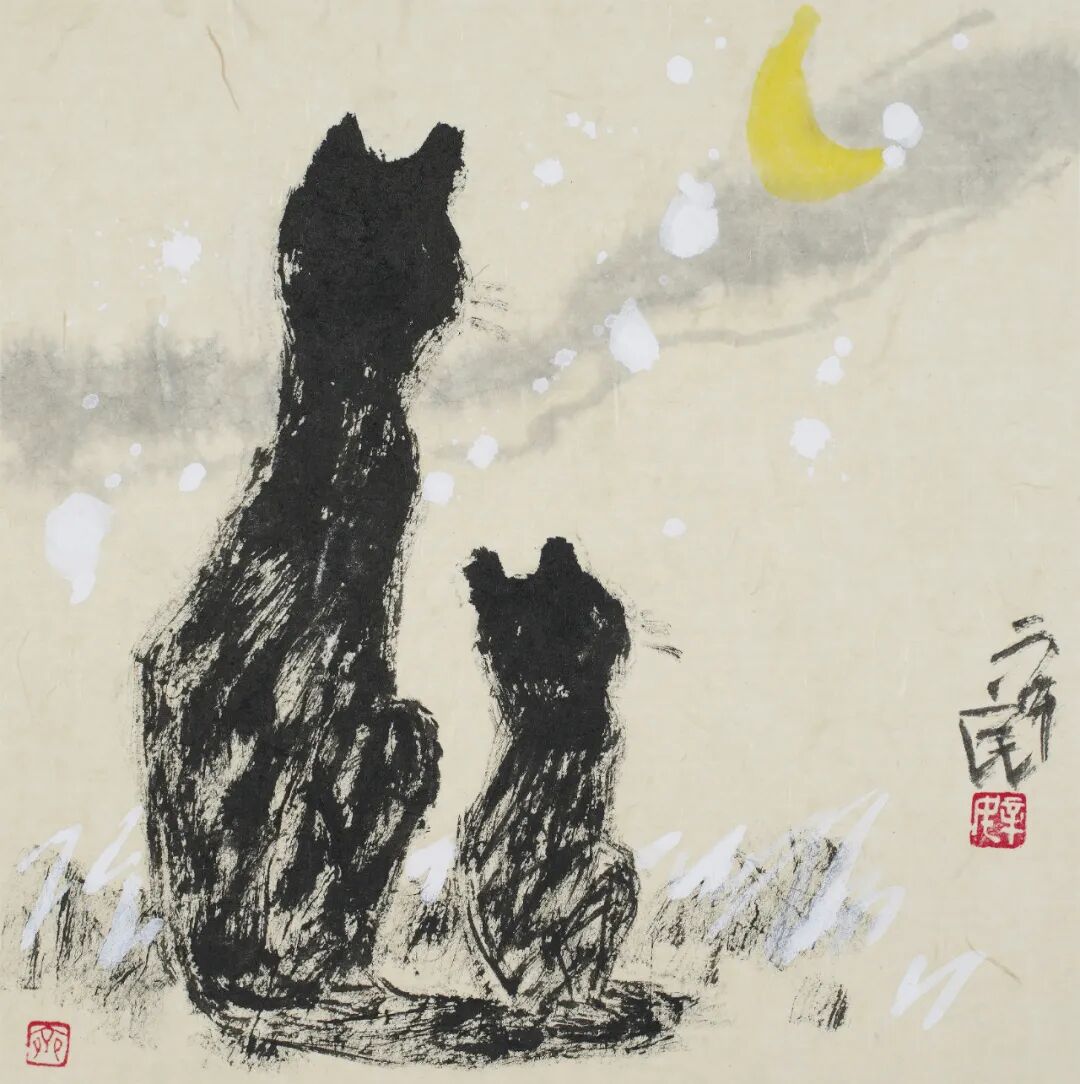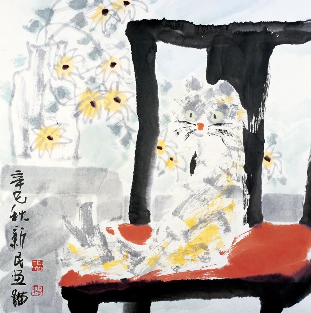 齐辛民画猫堪称一绝,简练的笔触、拙朴的造型,有别于传统花鸟画的高古、典雅,多了几分生趣和可爱,萌翻众人,80 高龄硬是画出了“80 后”“90 后”也喜闻乐见的花鸟,这一点尤为难得。