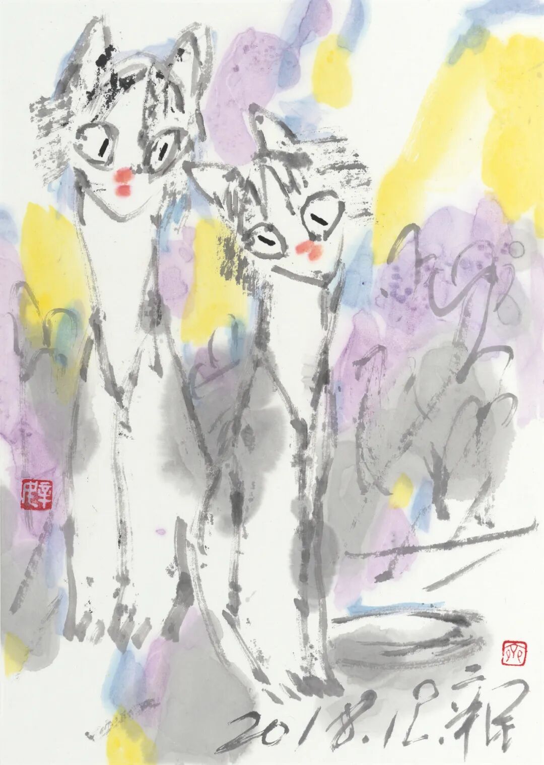近些年,齐辛民先生喜欢画动物和鸟类,涉猎的题材非常广泛,从体形较大的马、牛,到猫狗等小动物,再到鸽子、燕雀等各种鸟类,无所不包。他对这些动物寄托了更为真切的生命情怀,普世的人文关爱与稚拙、纯真的童心童趣跃然纸上。
