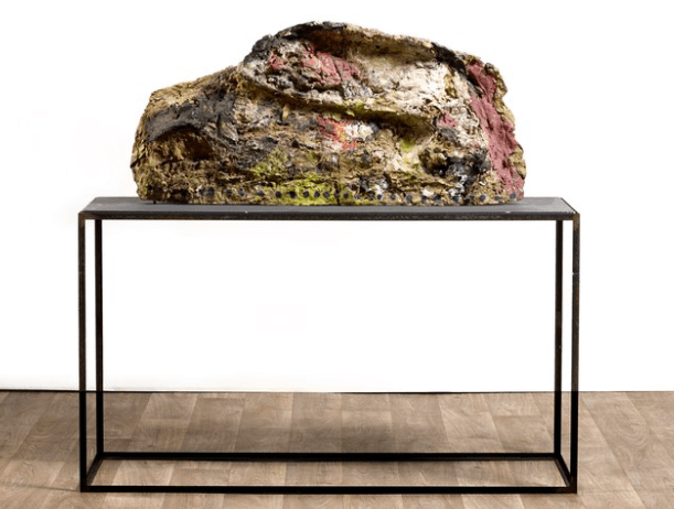 弗朗茨·韦斯特,无标题(由赫伯特·布兰德尔绘制),1986年。艺术家金属桌上的纸上油画——54×110×22厘米。Omer Tiroche画廊提供。