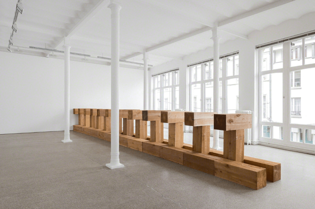 卡尔·安德烈(Carl Andre),THEBES,2003年。西方红雪松木材——120×90×1080厘米。图片由Galerie Greta Meert提供。
