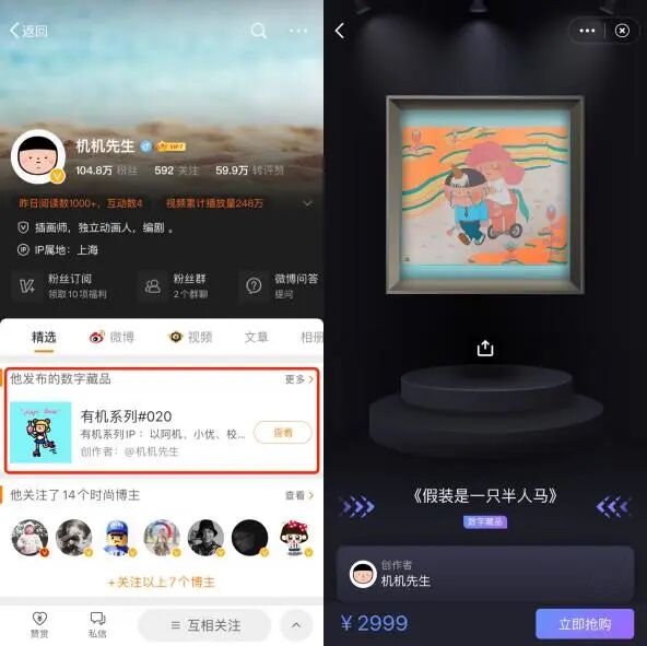 图示:@机机先生微博主页&首个数字藏品