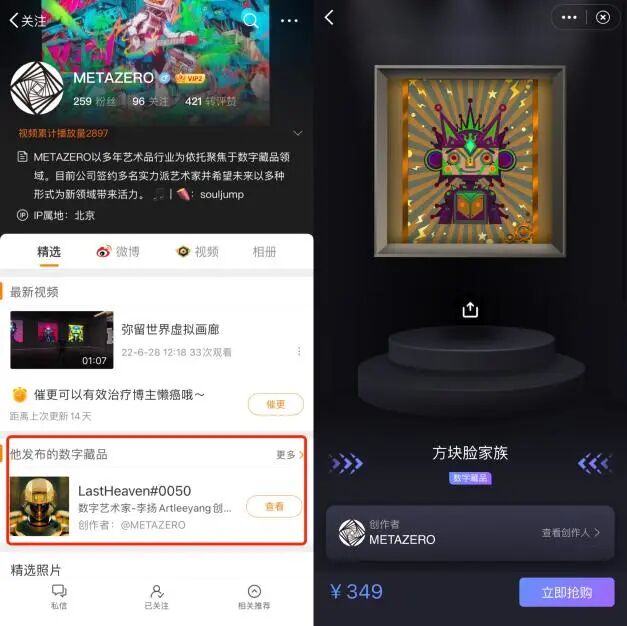 图示:@METAZERO微博主页&王峰首个数字藏品