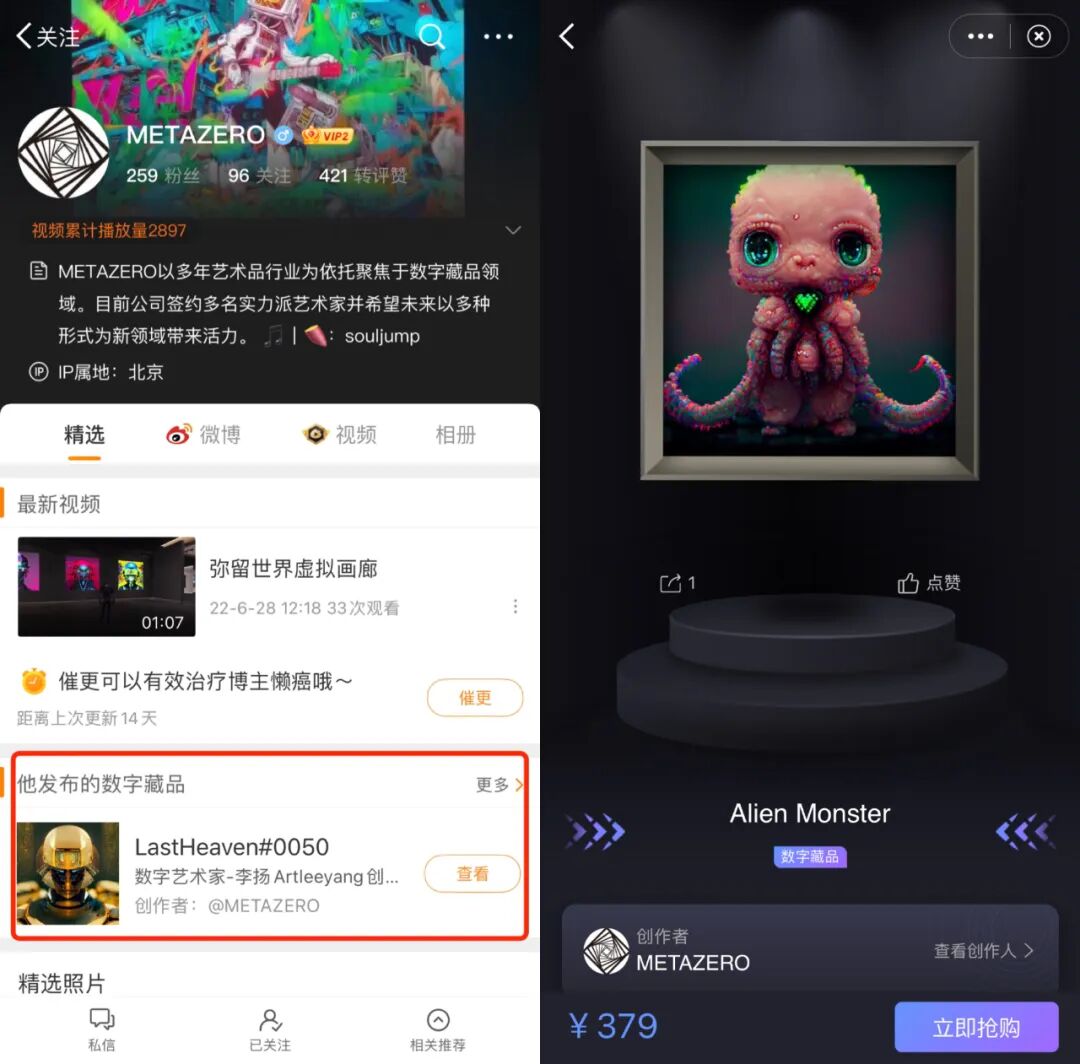 图示:@METAZERO微博主页&逗砂首个数字藏品