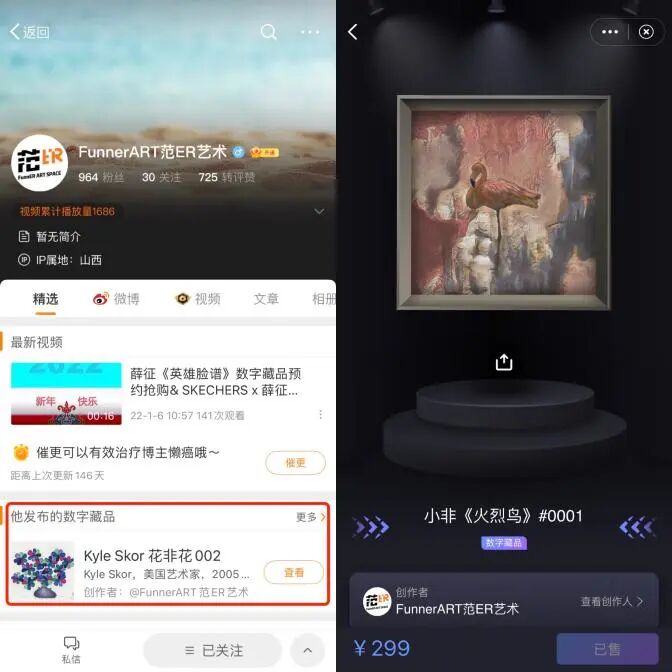 图示:@FunnerART范ER艺术微博主页&AI小非首个数字藏品