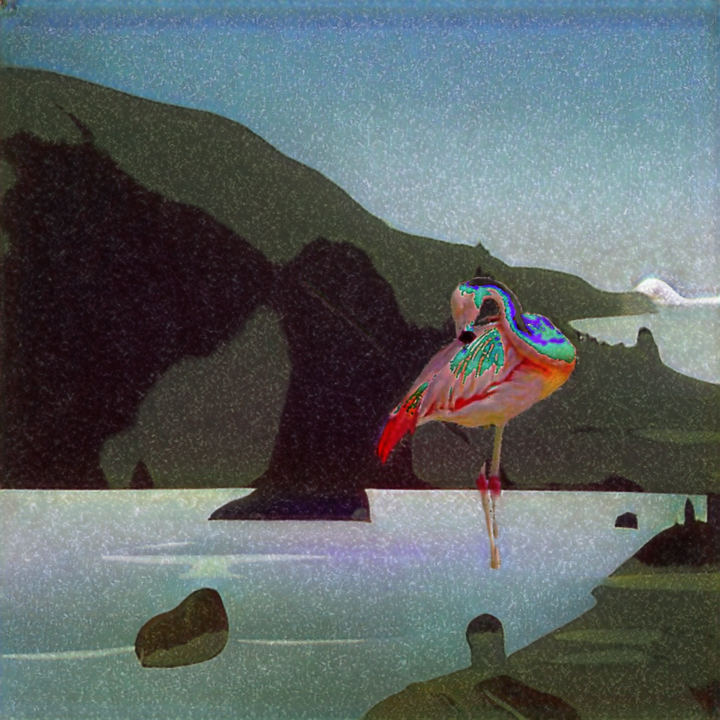 最后,TopHolder精选了虚拟艺术家小非的数字藏品《火烈鸟》,一起走进感受人工智能AI艺术创作的世界!