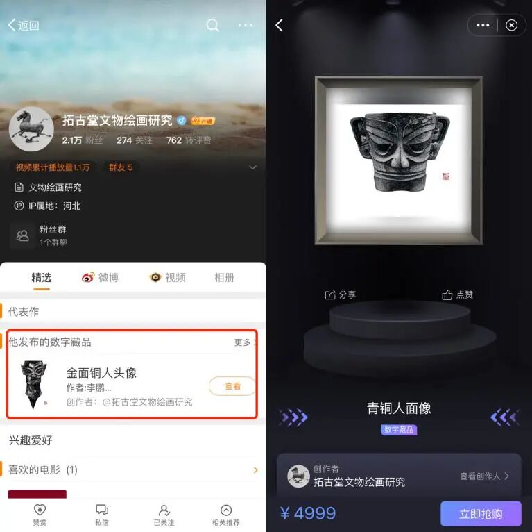 图示:@拓骨堂文物绘画研究微博主页&首个数字藏品