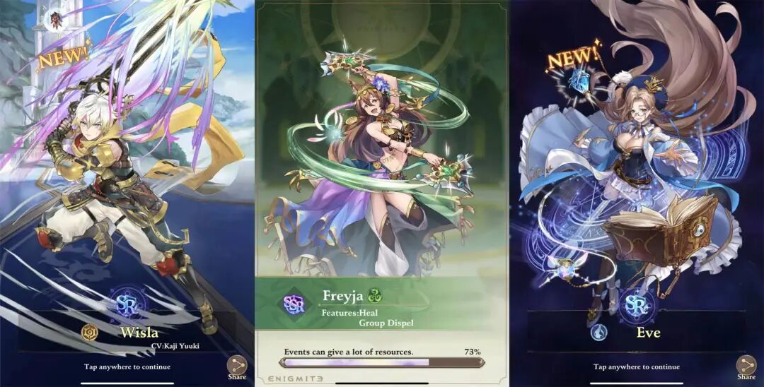 作为偏二次元题材的RPG,《Enigmite's Prophecy》也在角色展示/养成上有更多着墨,随着养成进度能看到卡牌有多种不同形态的Live 2D立绘。