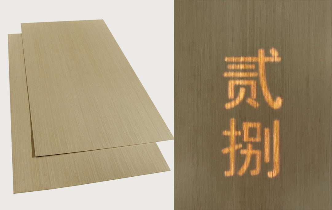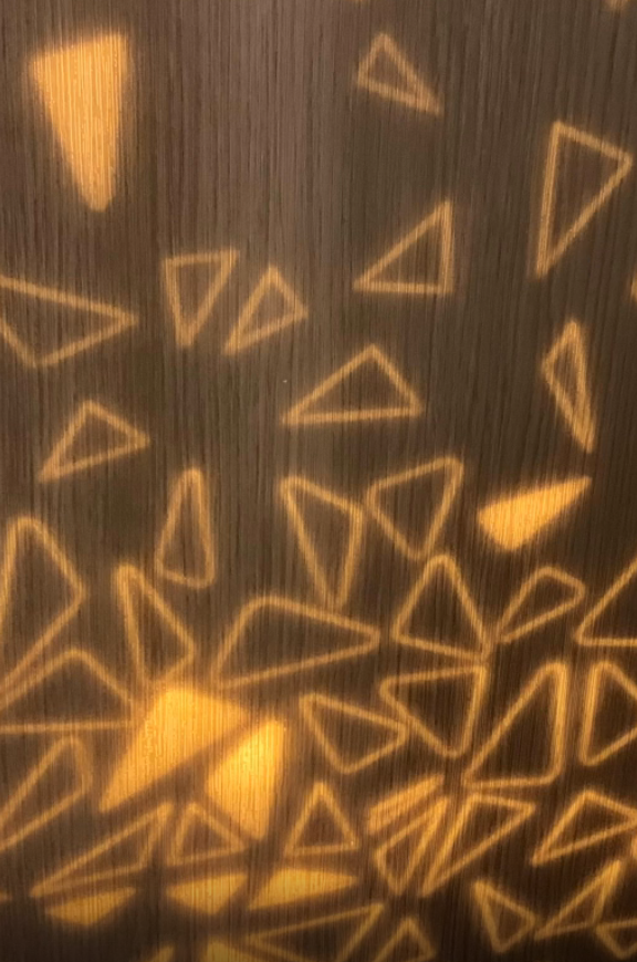 3、第三层是木皮,将木皮提前压制在有机玻璃上,镂空的光线穿过玻璃投在木皮上,镂空的部分在木皮表面就会呈现出透光效果。