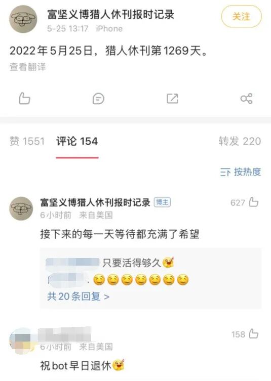 有人问,距离富坚义博上次连载过了多长时间?在微博上,就有相关账号帮他计数,孜孜不倦……