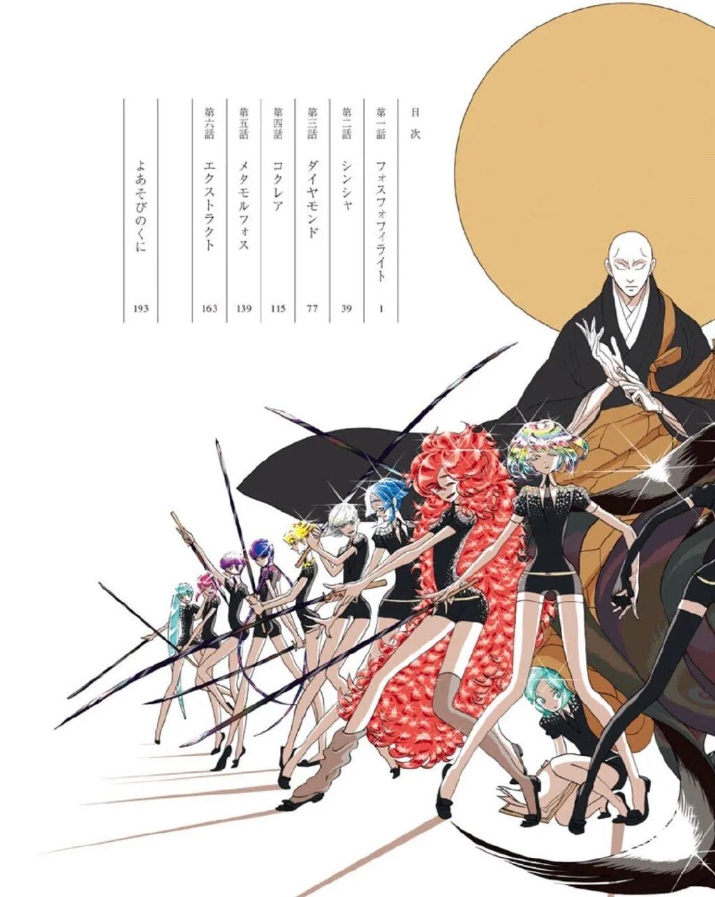 作品构筑了一个地上生物经过漫长的岁月化为人型宝石的未来世界,讲述了人型宝石们与来自月球、企图将自己用作装饰品的“月人”战斗的故事。