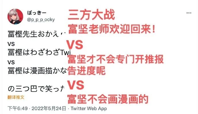 5月24日下午15点32分,推特上一个自称“富坚义博”的账号突然横空出世。