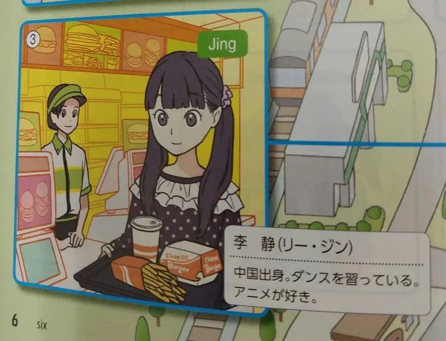 有人挖出了日本2021年开始启用的英文教材,里面有个叫"李静"的来自中国留学生,设定是喜欢动画,会弹吉他。