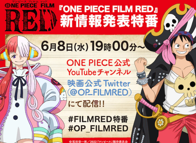 超人气漫画《海贼王》全新动画电影《海贼王 FILM RED》即将于8月6日上映,官方宣布将于6月8日举行特别活动,届时将公开《FILM RED》新情报,敬请期待。