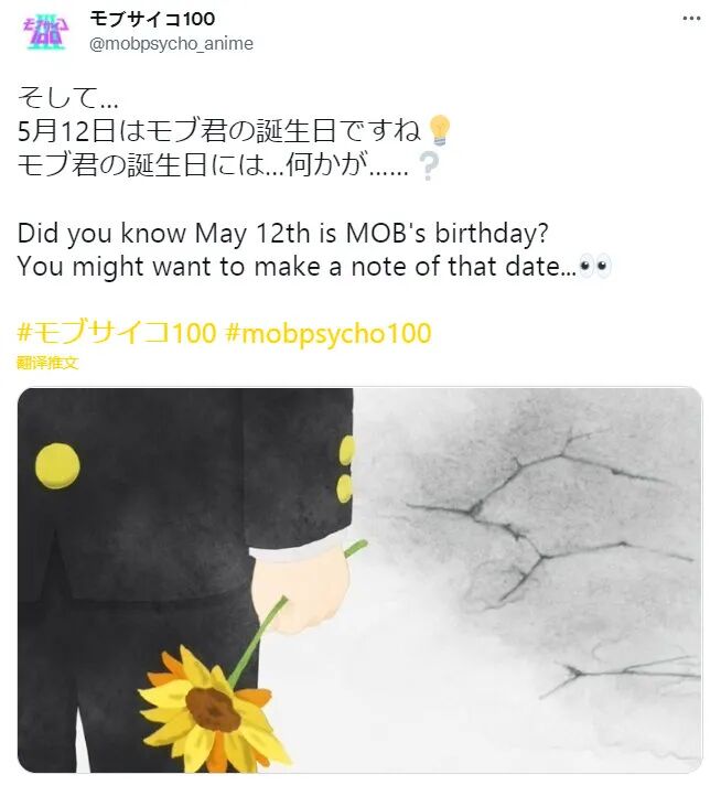 刚刚!(其实不是刚刚),《灵能百分百》动画官推发文配图:影山茂夫5月12日生日会有些…什么…