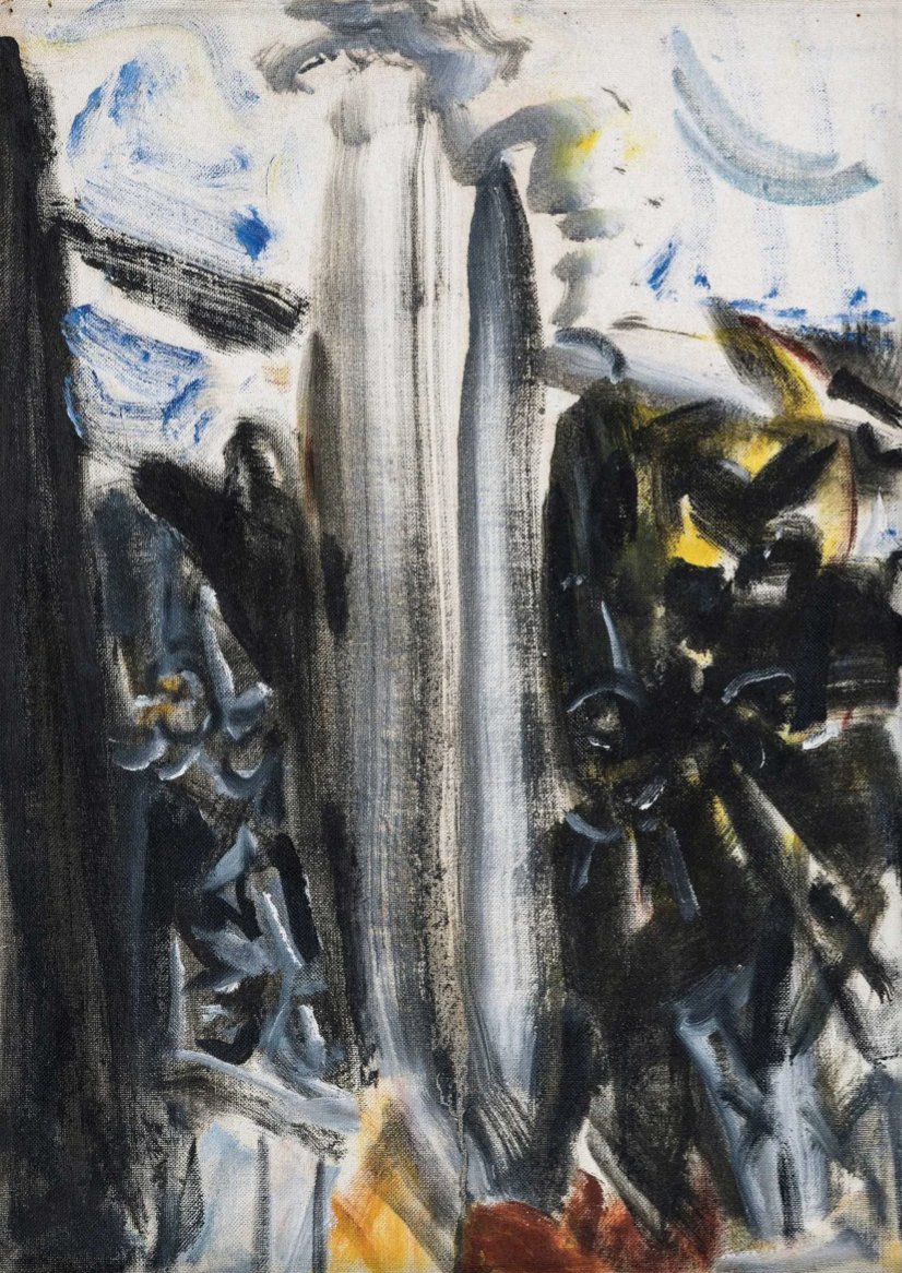 ▲傅抱石 1962年作 满身苍翠惊高风 立轴