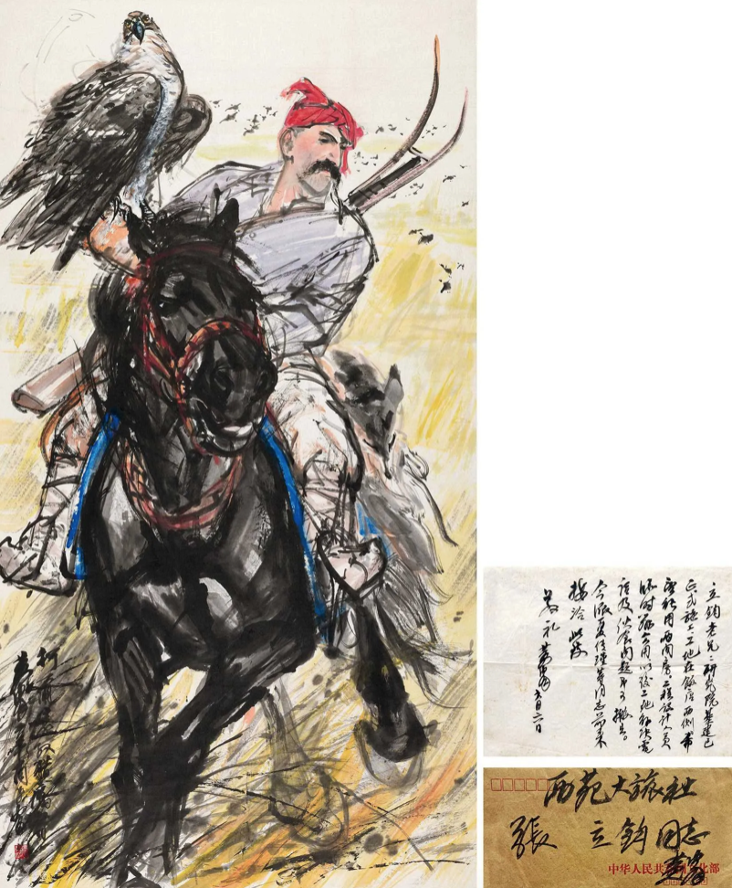 ▲黄胄 辛酉(1981年)作 柯尔克孜猎鹰图 镜心
