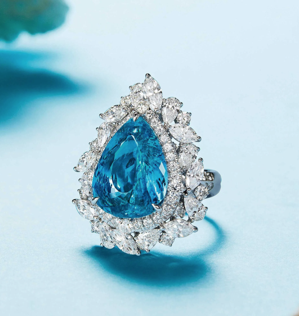 ▲11.46克拉巴西帕拉伊巴碧玺配钻石戒指