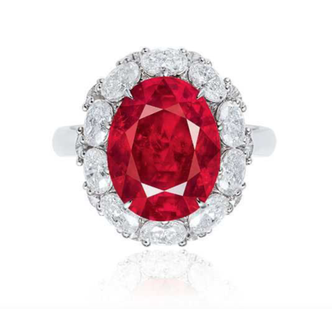 ▲6.53克拉缅甸「鸽血红」红宝石配钻石戒指 未经加热
