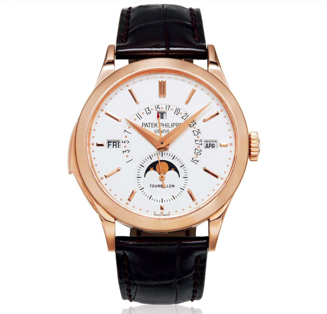 ▲百达翡丽 Grand Complication系列 Ref.5216R 18K玫瑰金 手动上弦腕表 万年历 三问 陀飞轮 月相显示 约2012年