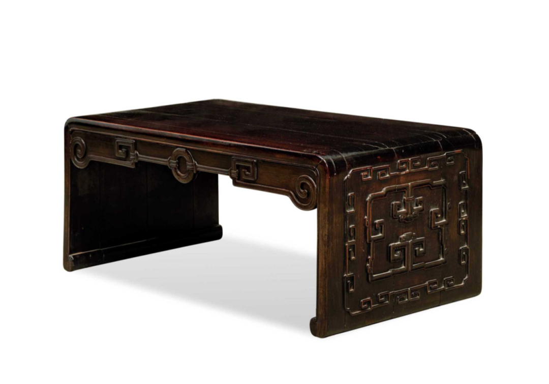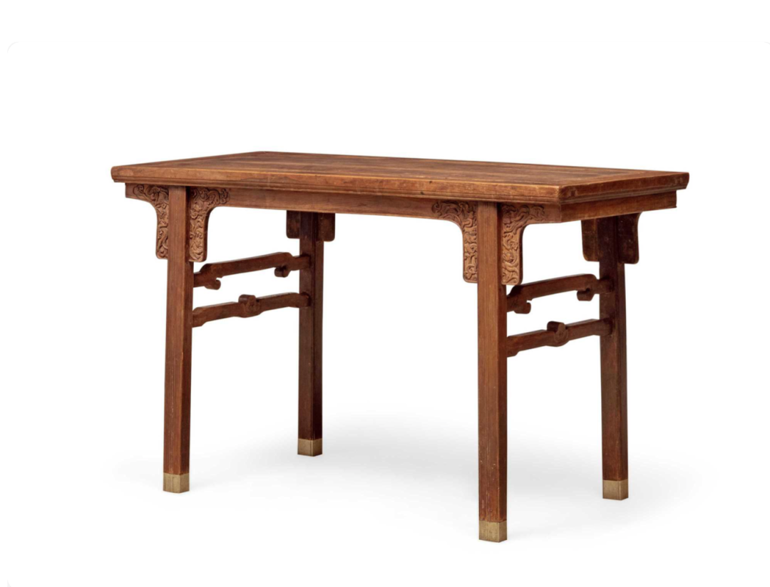 ▲清早期 榉木夹头榫螭纹牙头平头案