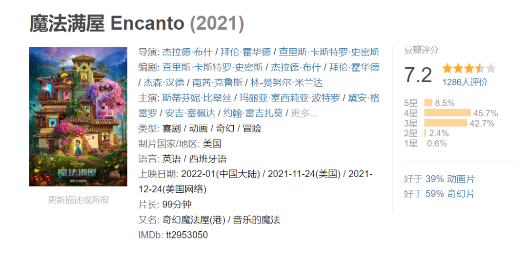 动画电影《魔法满屋》宣布定档12月24日上线流媒体平台Disney+,明年2月8日发行碟片。