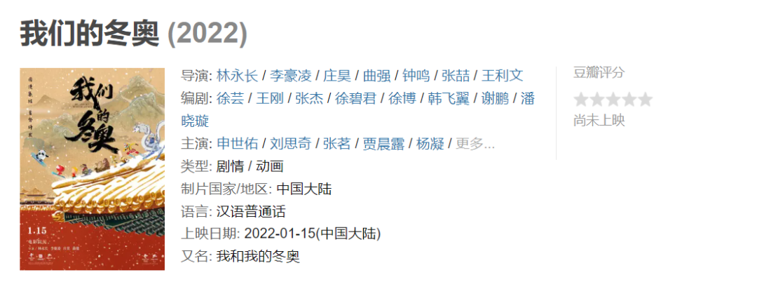 动画电影《我们的冬奥》定档1月15日上映
