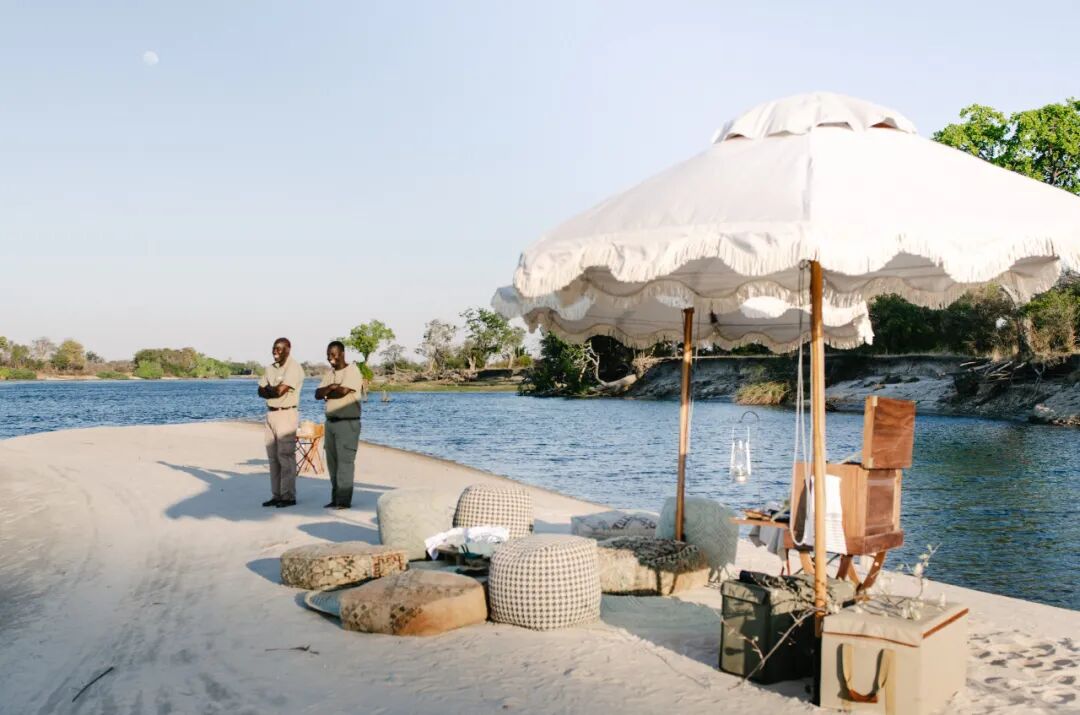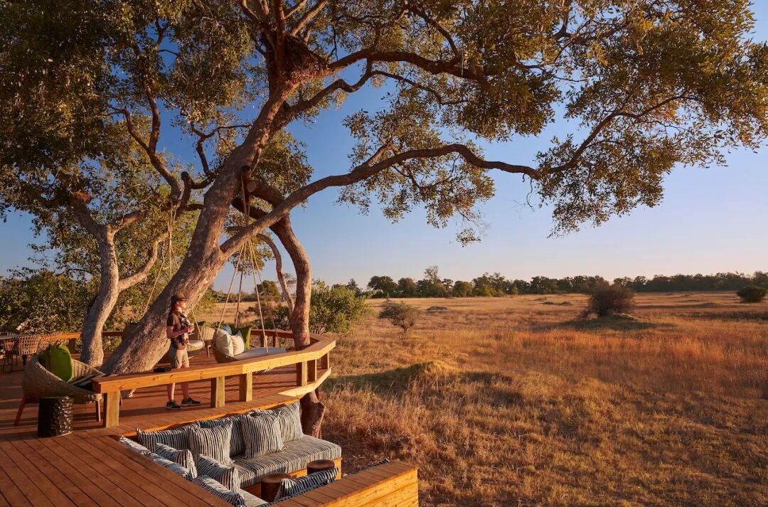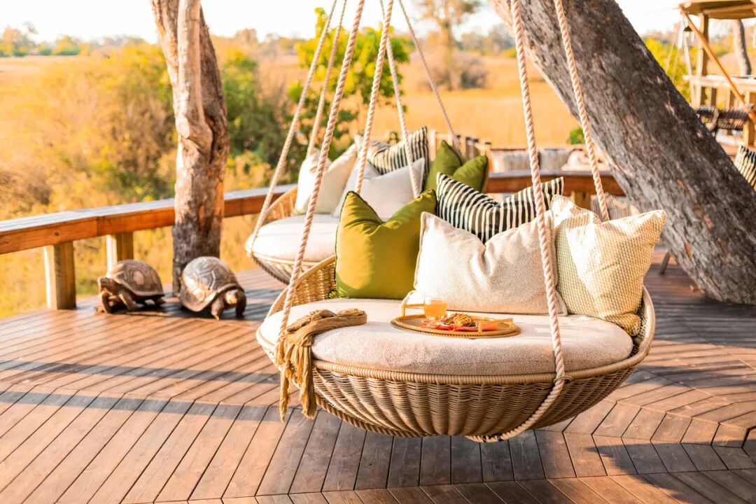 在宽敞的开放平台上,可以拥有自己的露天甲板,在大自然和野生动物的包围下度过一个夜晚。平台由一张开放式四柱床、一间浴室和一个带私人壁炉的观景台组成。你在下午晚些时候抵达天空套房,正好赶上日落时分享用日落饮品。晚餐是一个美味的野餐篮子,当你蜷缩在毯子里围坐在炉火旁时,你可以享受它。奥卡万戈三角洲的声音将围绕着你,在你的上方是最壮观的星空。冒险与浪漫的完美结合。第二天早上,将在出发前享用咖啡和早餐。