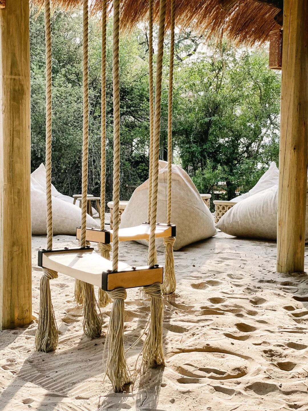 Tuludi营地是树屋风格,房间和主要区域是圆锥形帐篷风格,使营地整体看起来美观宜人。可以从一张铺着垫子的舒适沙发上欣赏完美的日落,此外,还有一个大型游泳池和一个离地四米的树屋图书馆。