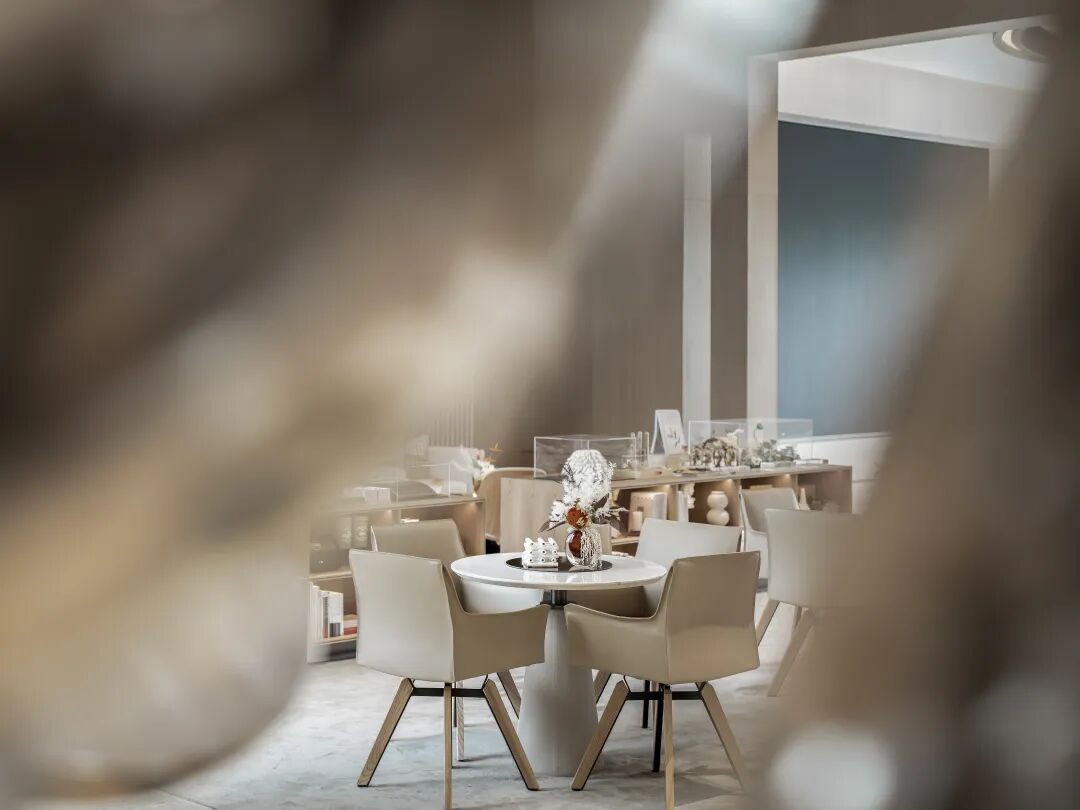 沙龙区设计通过不同材质之间的物理性质、视觉感受、色彩度对比营造出空间的温度差,从而令空间无形之中便能完成空间分区的功能,空间功能可开可合,满足不同数量、规模下的交流、分享活动。