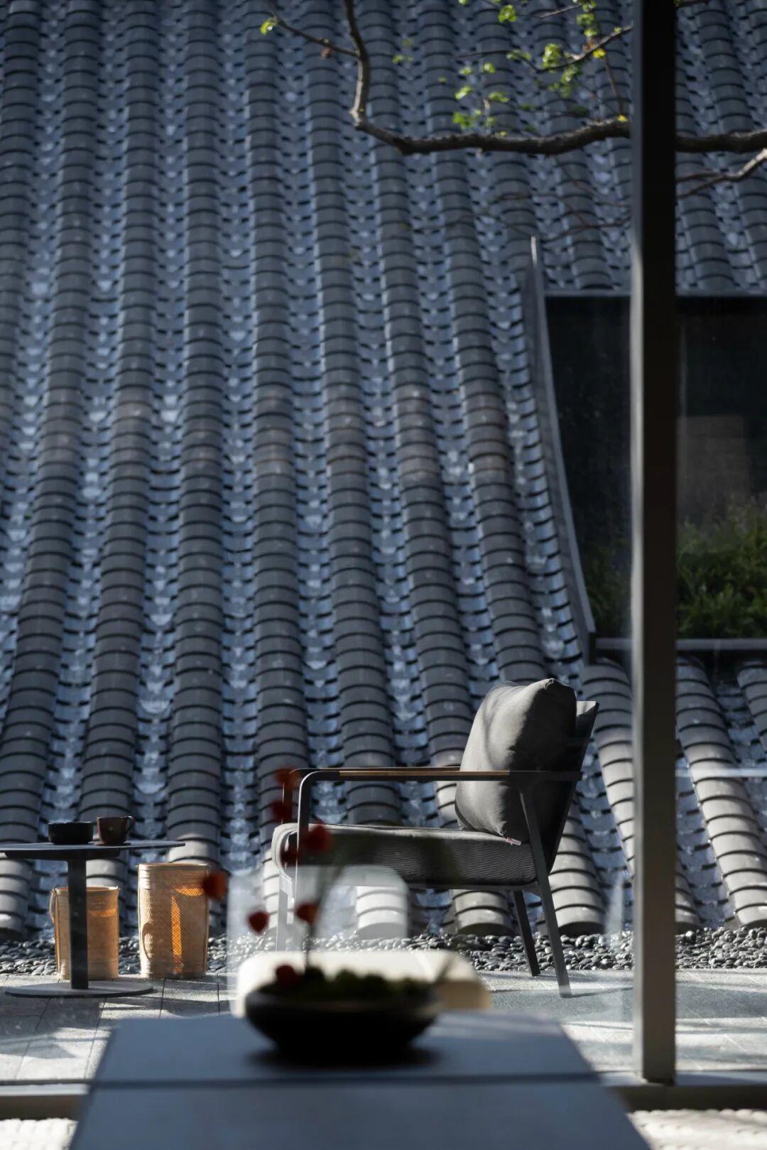把绍兴的屋顶嫁接到下沉庭院里,这是对时间的一种再利用。时间和空间都是计量单位,空间里有体积,光影,色彩;时间里有声音,味道,触感。记忆可以被留住,更可以被循环。