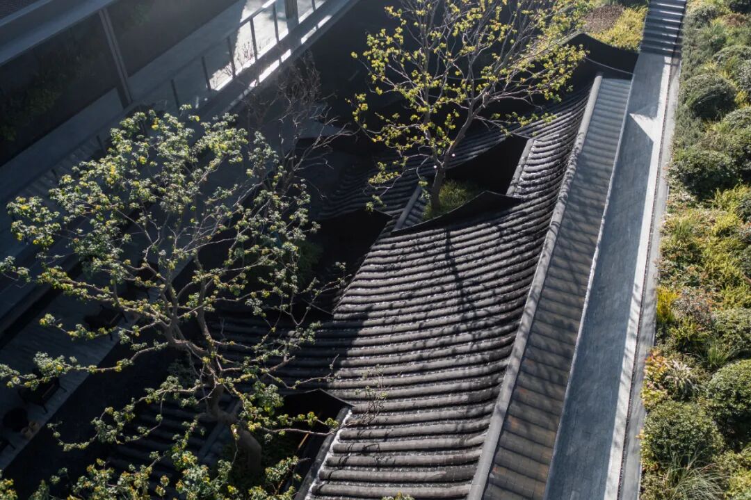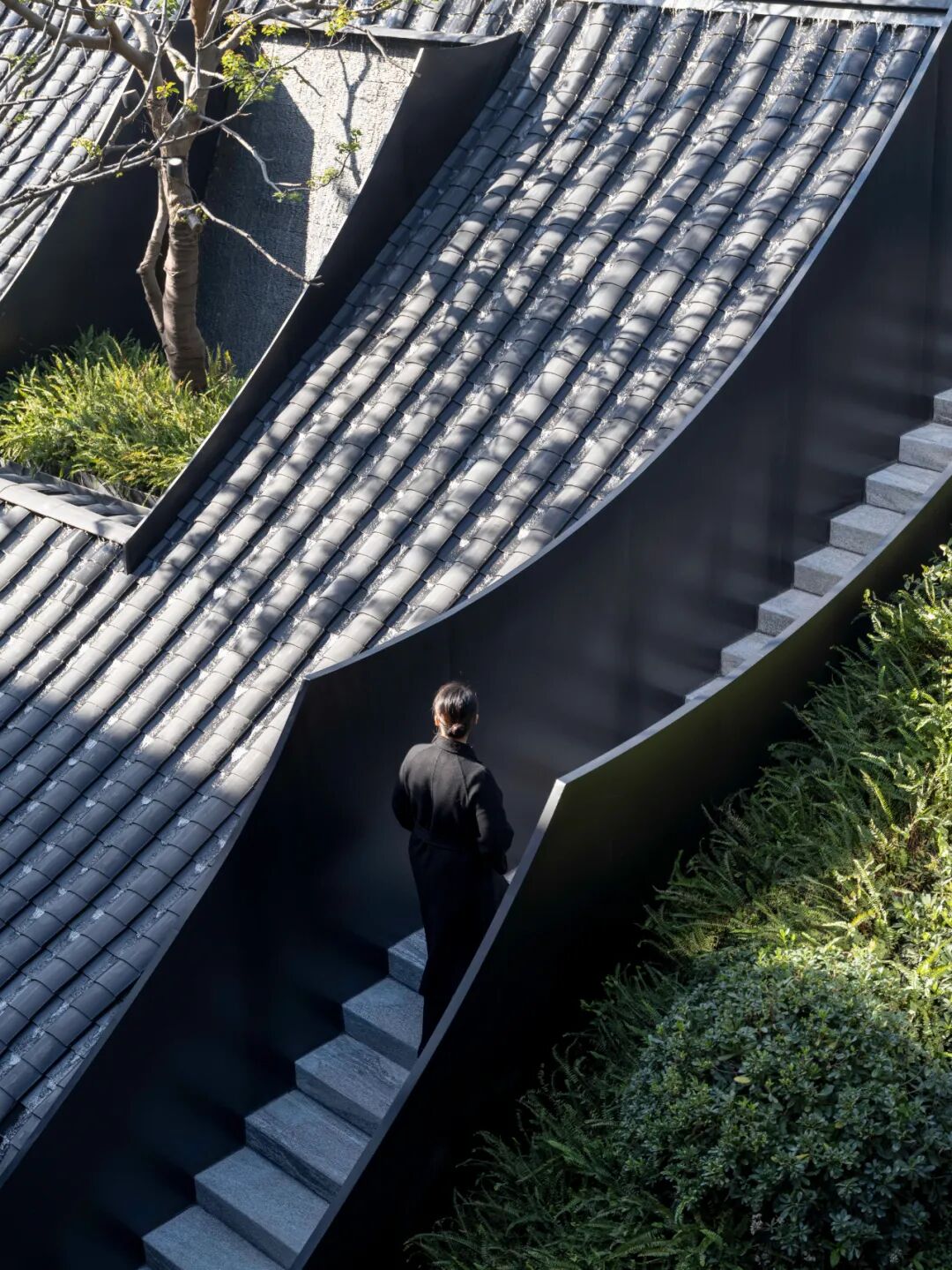 The process of urbanization has pushed down most bungalows to build high-rises. This traditional southern residence with dark grey tiles and white walls can no longer keep up with the needs of the times in terms of internal use, but its roof space can be reused to form a new way of space use.The originally bird's-eye view roof can be transformed into interesting gardens for people to climb and rest, so that urban people can once again experience the fun of going to the house and uncovering tiles. Stitching modern reinforcedcement with traditional roof and making "tradition" as the external extension of modern interior is an important step for people to return to nature.