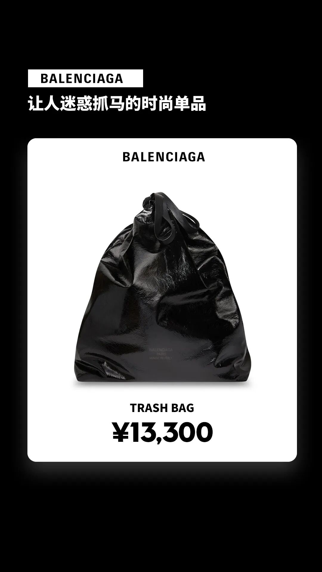 以“丑”出名的巴黎世家就在前不久上新了一款长得像垃圾袋(不,就是垃圾袋)的包,售价却高达一万三千多