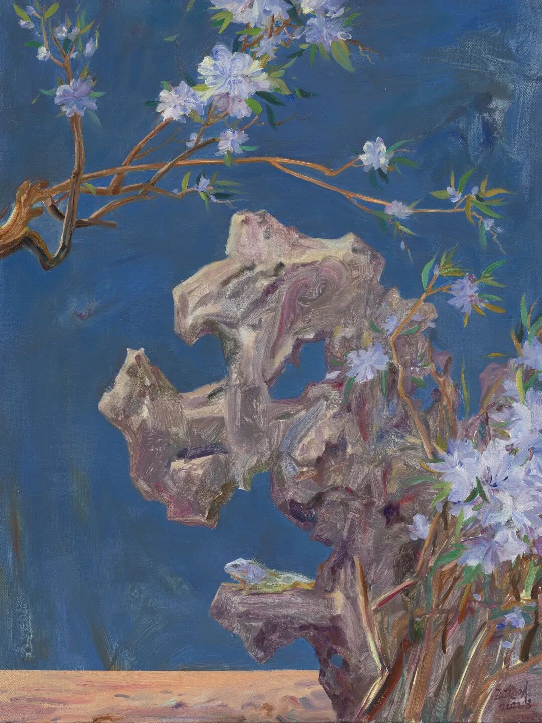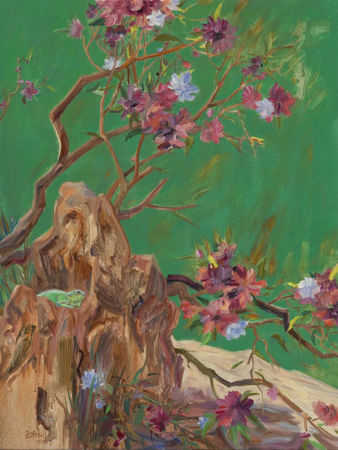 王朝刚 《镜花缘-海棠与蜥蜴》 2018年