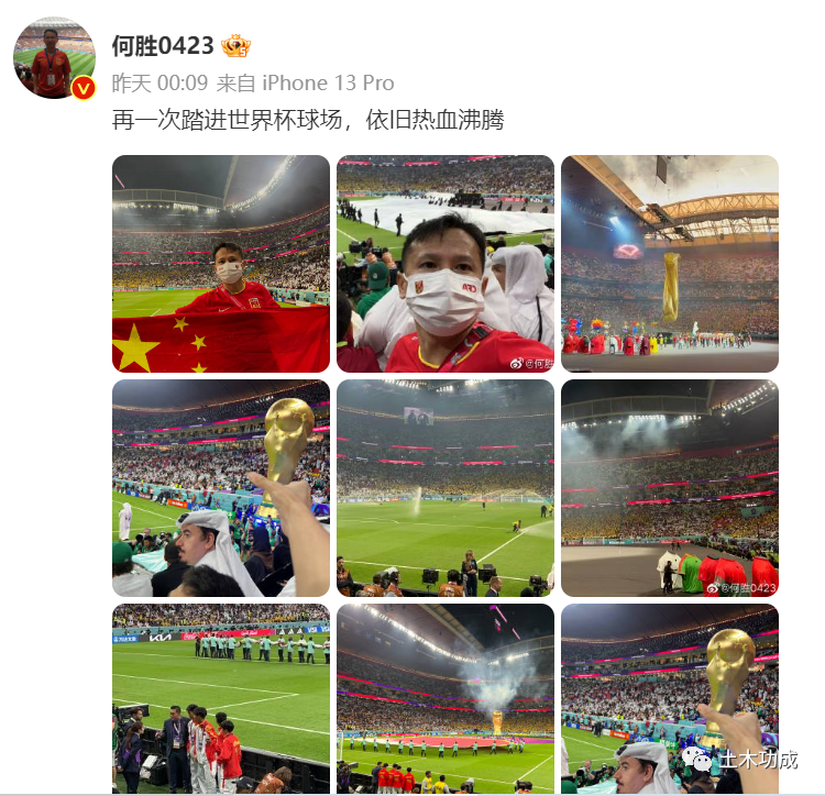 2022卡塔尔世界杯赛事正酣,而退钱哥自然也不会缺席这么重要的赛事。“退钱哥”何胜在个人社交平台上发文:再一次踏进世界杯球场,依旧热血沸腾 。