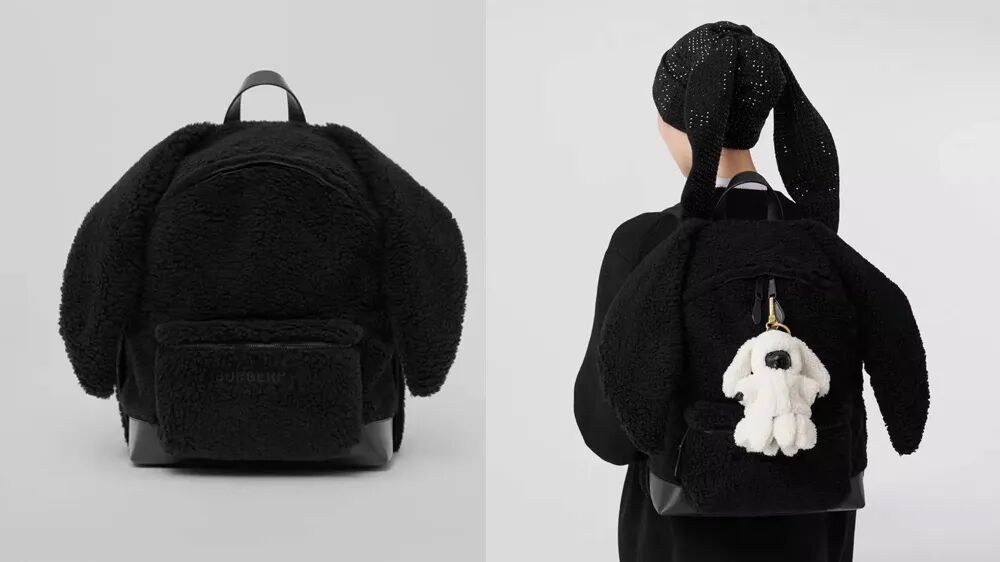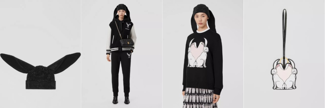 不仅如此,BURBERRY此次更是将兔子长耳朵的特点融入到了帽子和包包的造型设计中,也是非常有特色了。