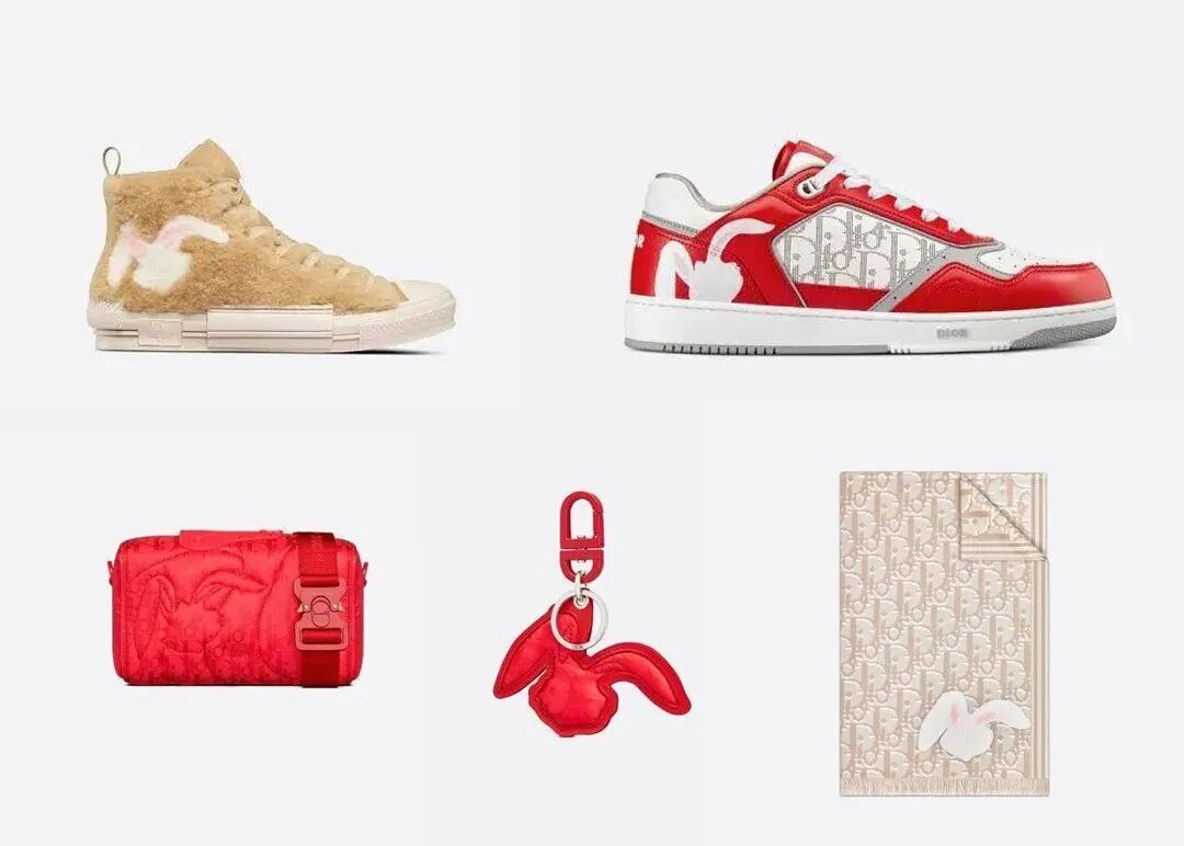 迪奥的兔年新春限定系列在产品上也相当丰富,包括鞋子、包包、衣服、配饰等一应俱全,在颜色上也只保留了中国红、金色以及白色为主打色,没有过分花哨的图案,看起来也不失高级感。