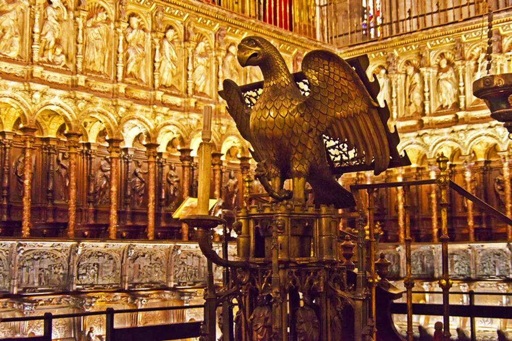在唱诗班席位处,有高排、低排两部分座椅,是西班牙木雕艺术的瑰宝,上排为文艺复兴式,下排为哥特式,两种风格水乳交融,是阿隆索·贝鲁格特和费利佩·韦加尔尼的作品。