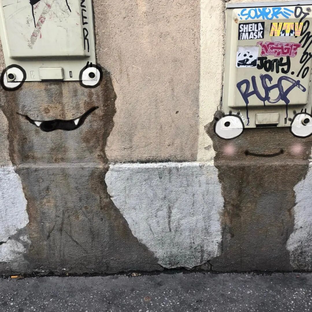 这位涂鸦艺术家从事街头艺术创作已经有6年的时间了,在从事街头艺术之前,她就喜欢在各种新奇事物上绘画,绘画本身就是一项久坐的工作,为了缓解疲劳,在绘画之余她会到处走走转转。一些有趣的场景,也会激发她的绘画欲望,就像脱落的墙皮,本身就会呈现出一个有趣的造型,只需要简单添加上几笔,一幅好玩的涂鸦作品就出现了。