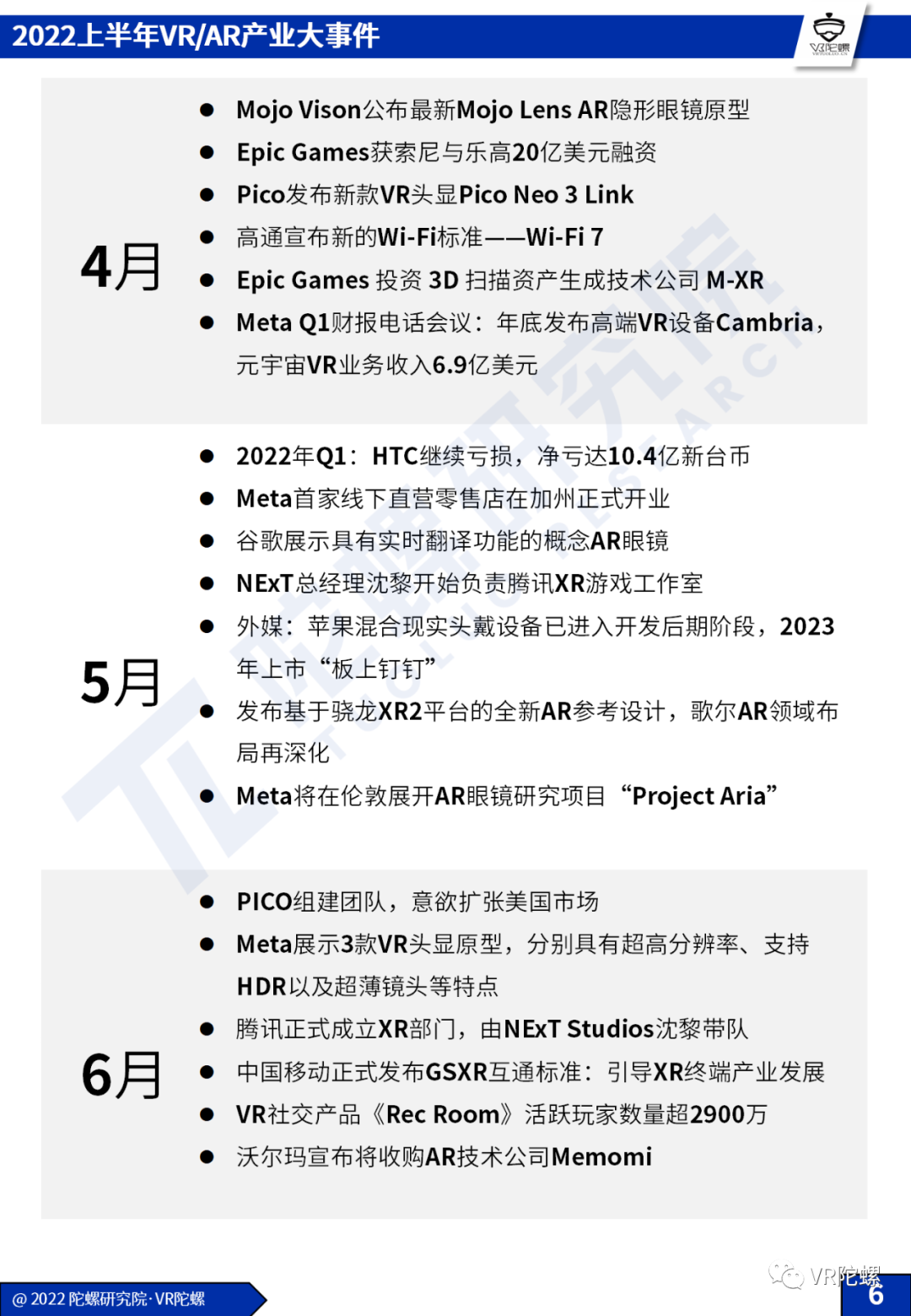 以下为2022上半年VR/AR产业发展报告完整内容。(扫描文末二维码,加入陀螺科技会员可获取本报告PDF版)