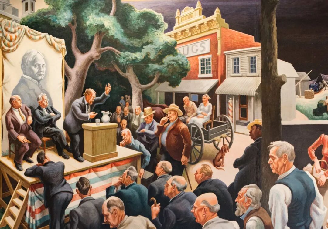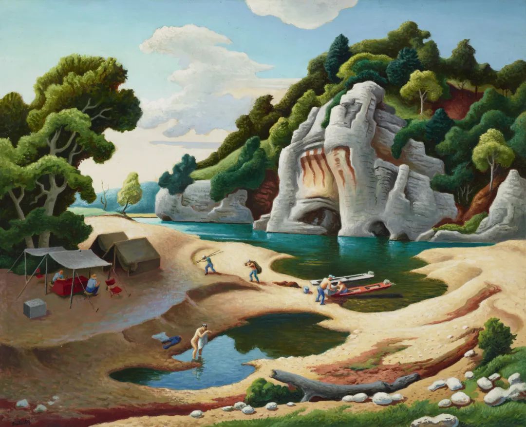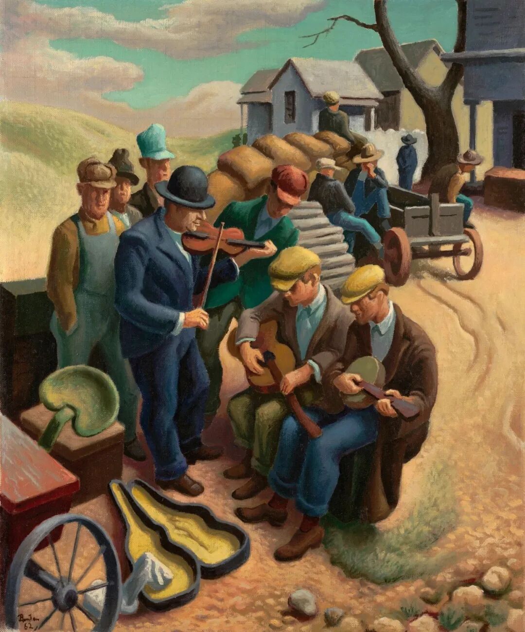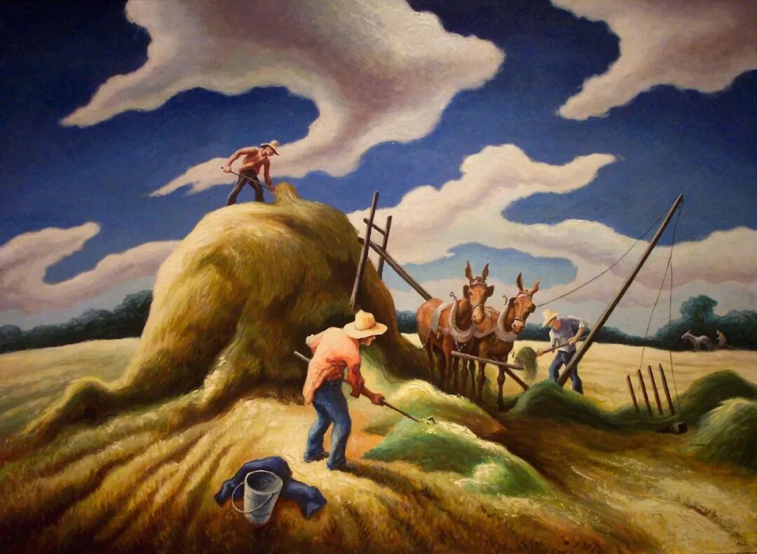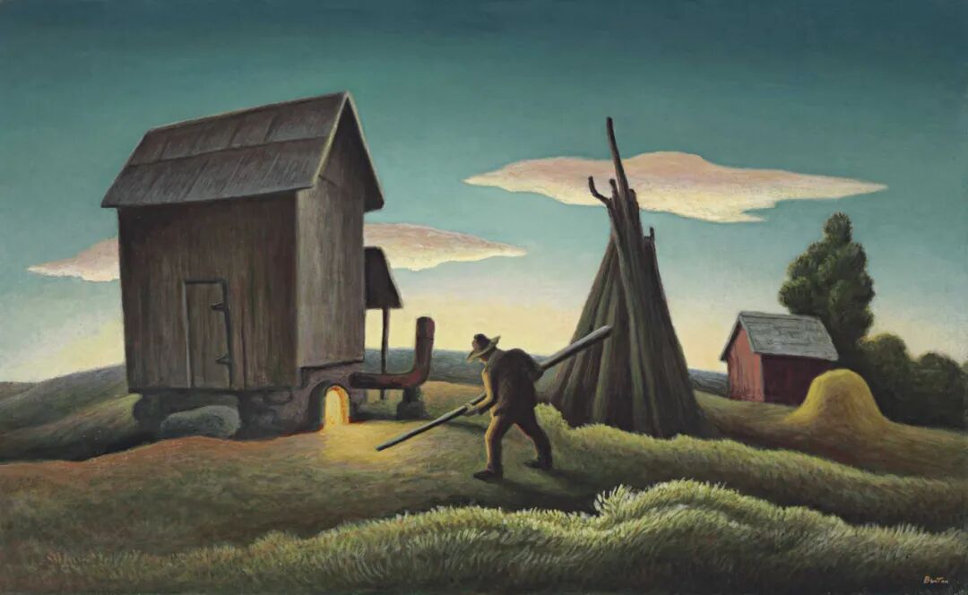 然而,1924年,本顿前往密苏里州看望他生病的父亲。回到家乡后,他重新找回了自己在中西部的根基,并与现代主义决裂,转而关注美国农村题材,如钢厂、伐木营、煤矿和棉田的生活。